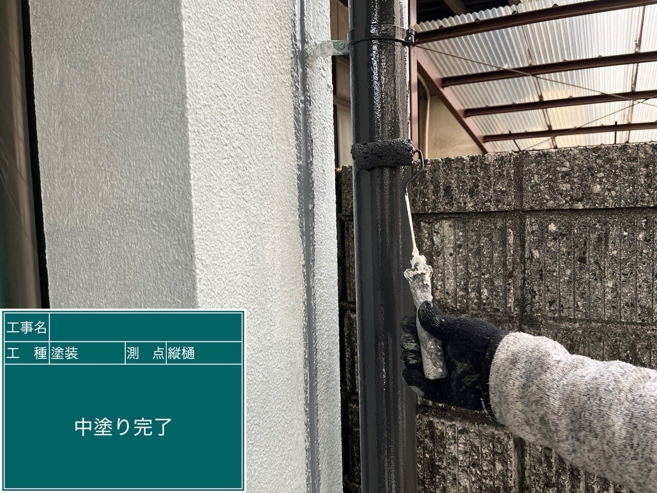 錆の再発と発生を防ぎ、塗料の密着度を上げるため下塗り材を塗っていきます