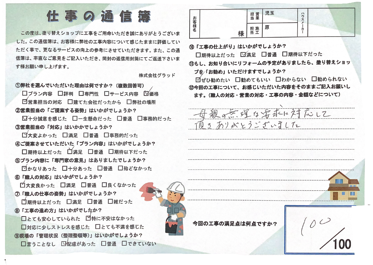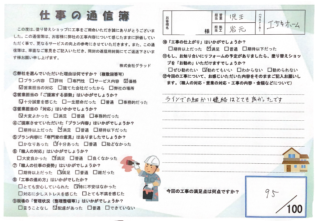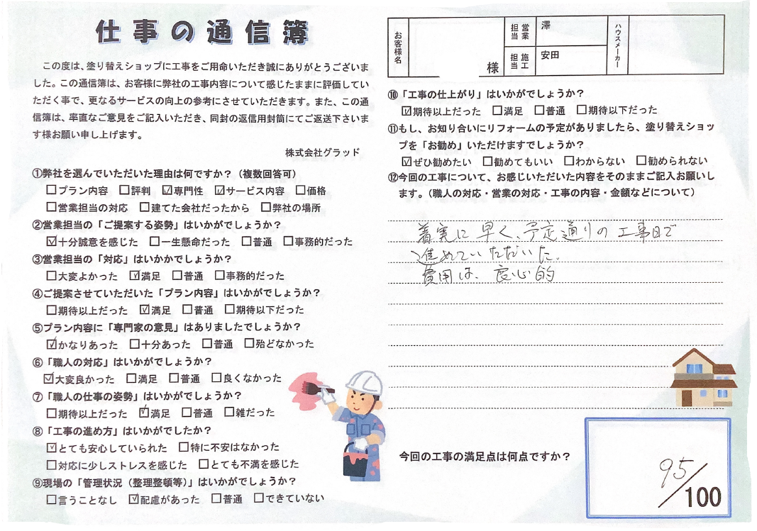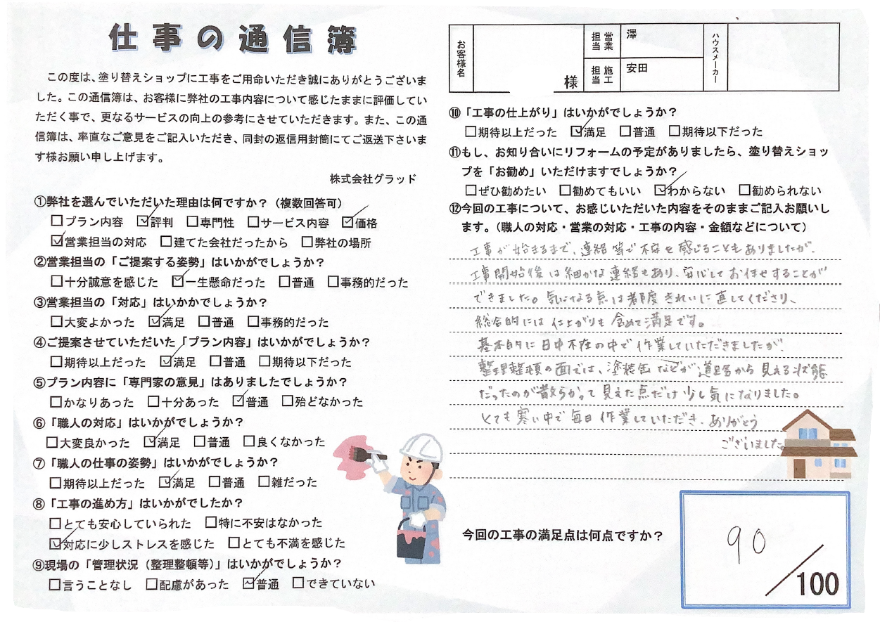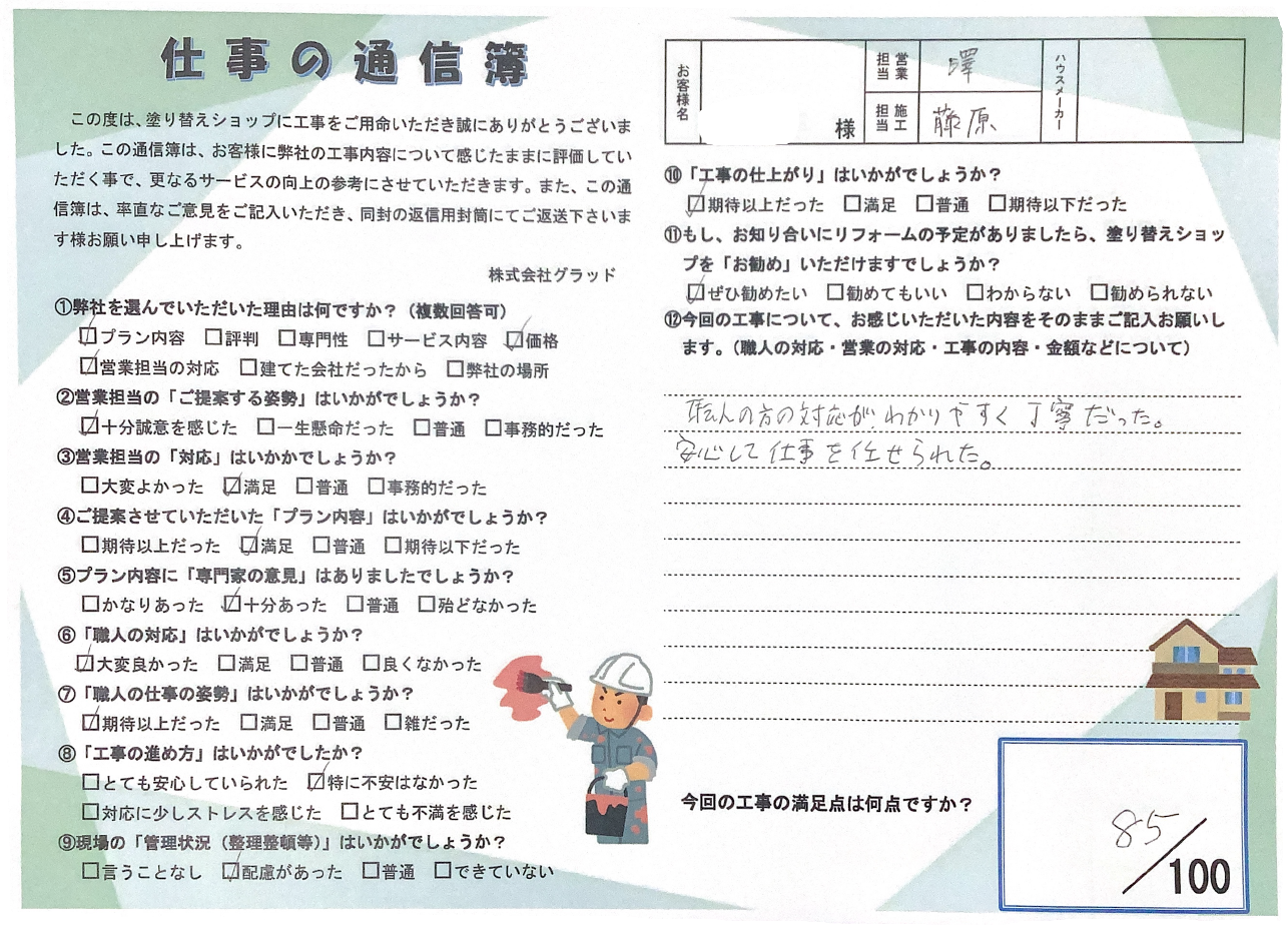 私にお任せして良かったとお客様に仰っていただけるように、また皆様にご満足いただけるよう日々意識を高く持ちながら、丁寧で美しい塗装を心がけます!
