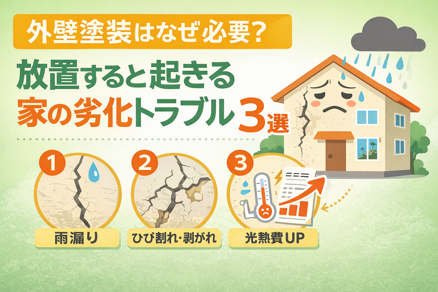 2025.12.26外壁塗装はなぜ必要?放置すると起きる家の劣化トラブル3選現場日記,塗装の豆知識 -